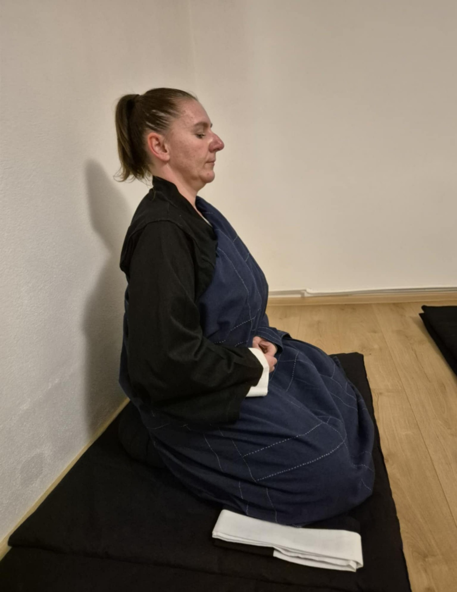 - Sed: Zaujmite lotosový sed (Kekkafuza) alebo pololotosový sed (Hankafuza) s rovnou, ale uvoľnenou chrbticou. Ak to nie je možné, sedťe so skríženými nohami alebo na stoličke. Vždy používajte špeciálny vankúš zafu a podložku zabuton pre správne naklonenie.